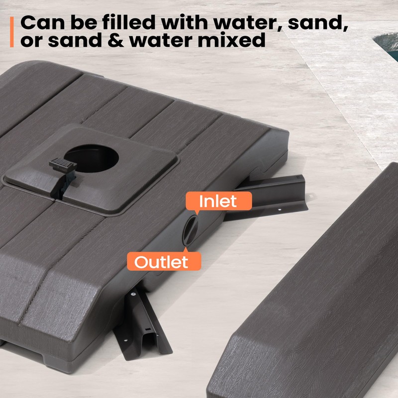 - Easy To Fill: Equipped with one large water filling ports, you can use it for cantilever umbrella base quickly and easily by just filling it with water or sand, and the design of the one side drainage ports can help you drain the water easily.