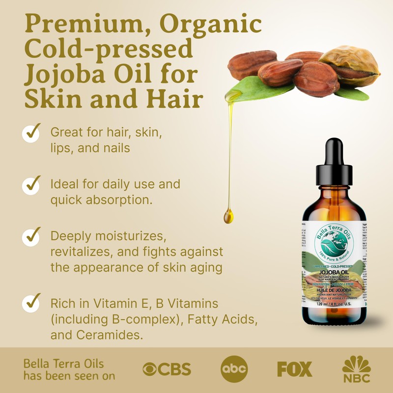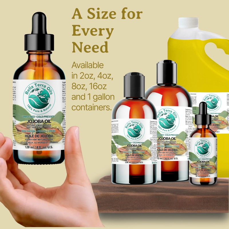 Jojoba Oil 120 ml 100% Pure Cold-pressed Unrefined Organic Premium Quality - Bella Terra Oils…
