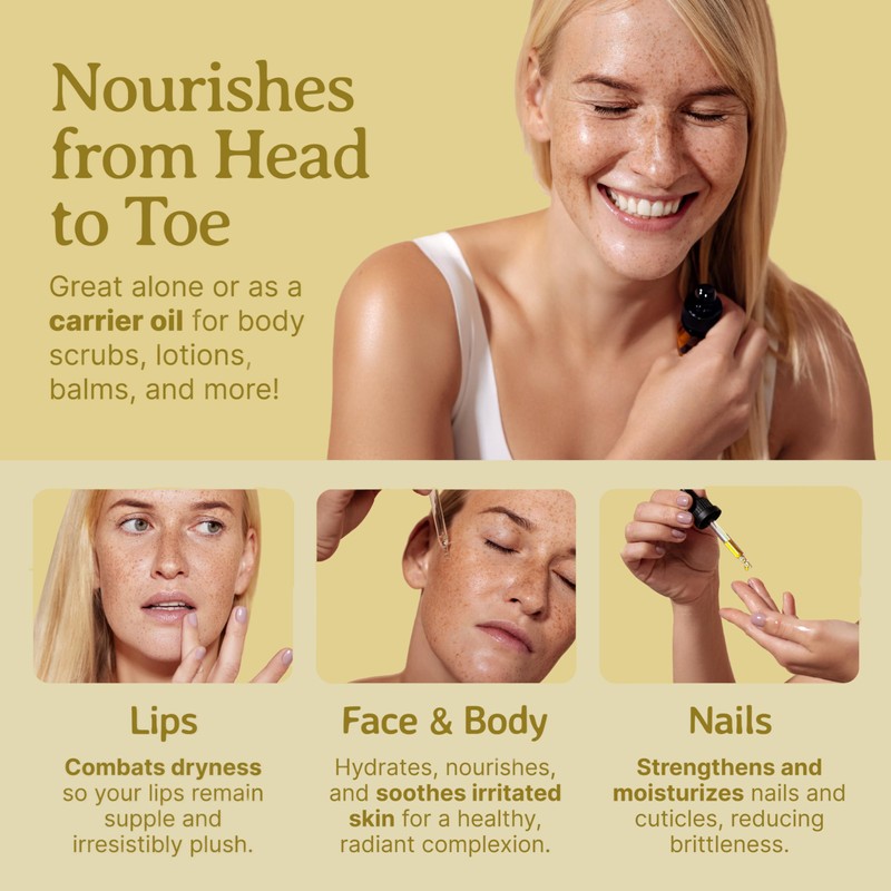 - ✔️Versatile Beauty Care: A multi-purpose oil that serves as a natural hair conditioner, skin moisturizer, makeup remover, and more. A one-stop solution for all your beauty needs!