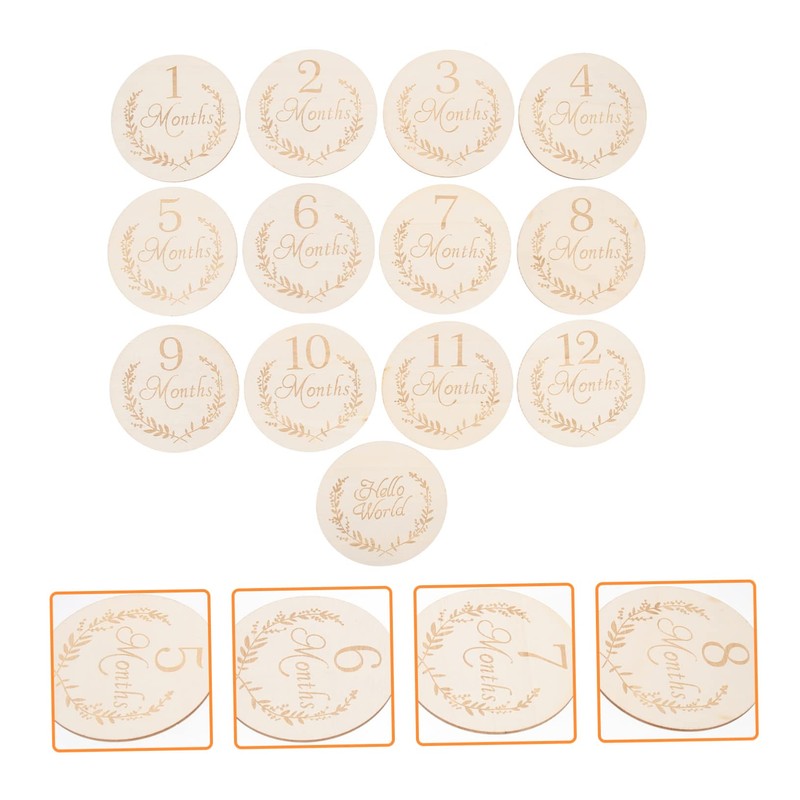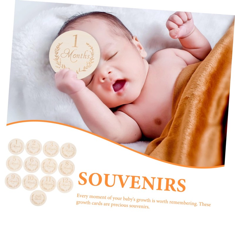 jojofuny 13Pcs Wooden Slices for Newborn Milestone Cards Growth Recording Discs Lightweight and Durable for Photo Props and Social Media Sharing