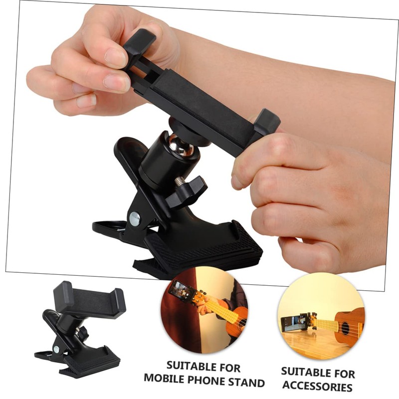 jojofuny 1pc Guitar Phone Holder Clips Guitar Phone Stand Cellphone Holder for Desk Mount Smartphones Rotating Stand Cell Live Broadcast Bracket Black Metal