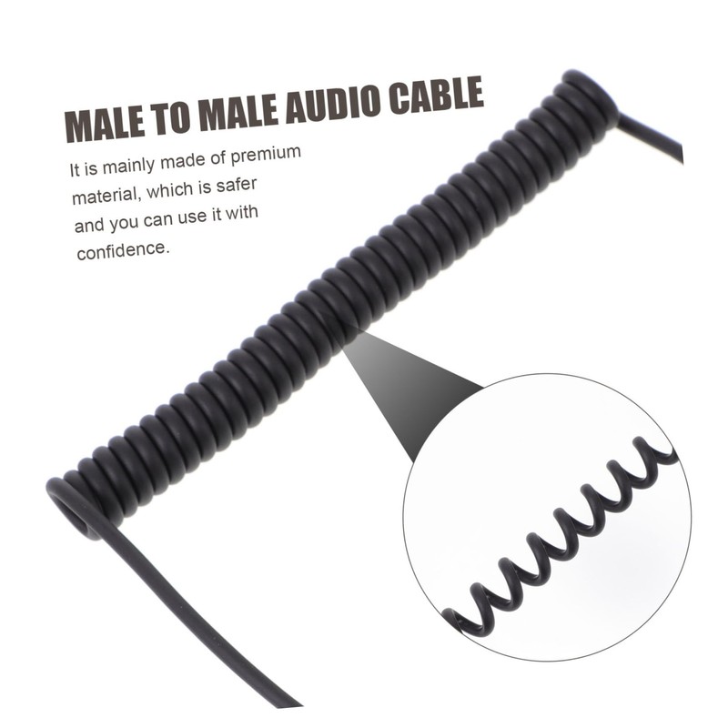 jojofuny 1pc Male to Male Audio Cable Multi-Purpose Aux Connection for Smartphones Cars and Speakers Spring Wire Design Black