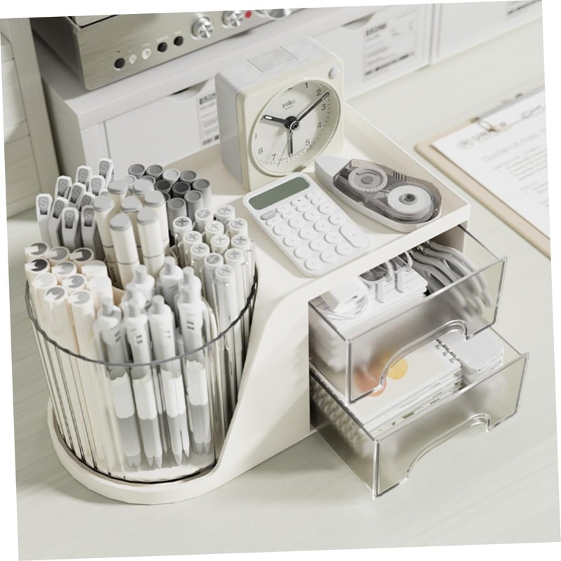 jojofuny Rotating Multi Functional Drawer Organizer Capacity Storage Box for Stationery Cosmetics and Files Pet Material Space Saving Desktop