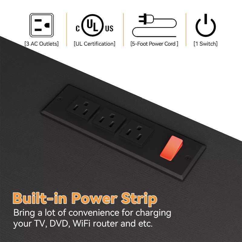 - 👍【TV Media Console Shelf with Power Outlet】This media entertainment center TV stand with a built-in power strip and 3 standard plug outlets provide convenience for charging your TV, Wifi router, gaming gear, vinyl record player, fan, etc.