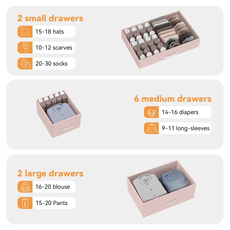 - 👍【Safe and Stable】Friendly to kids or young ones, This organizer with fabric drawers won't pinch hands if little guys want to organize their clothing in drawers. The anti-tip kit to install the dresser on the wall to provides a safe environment for your family