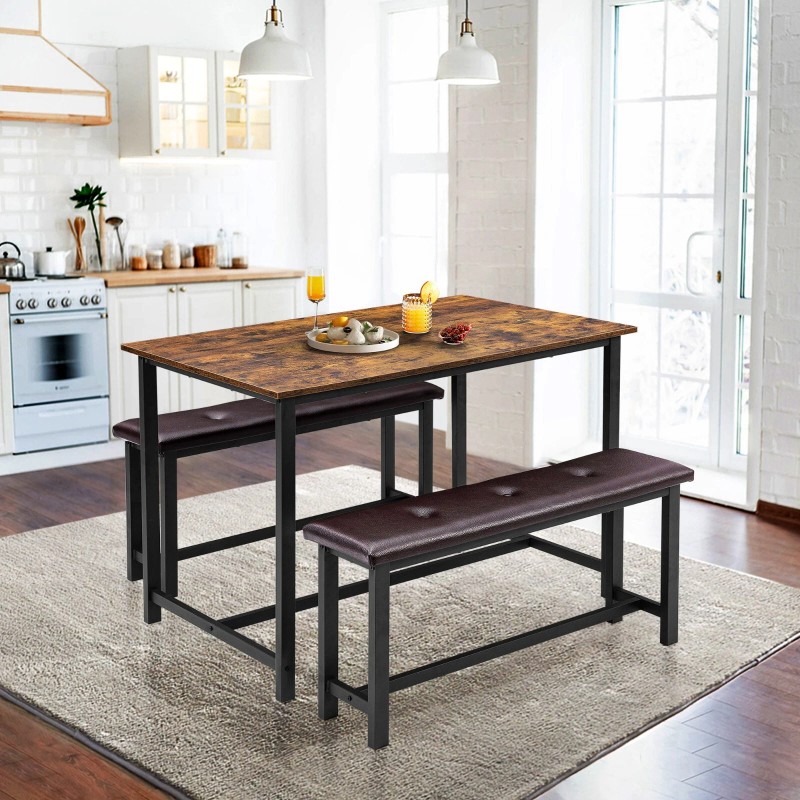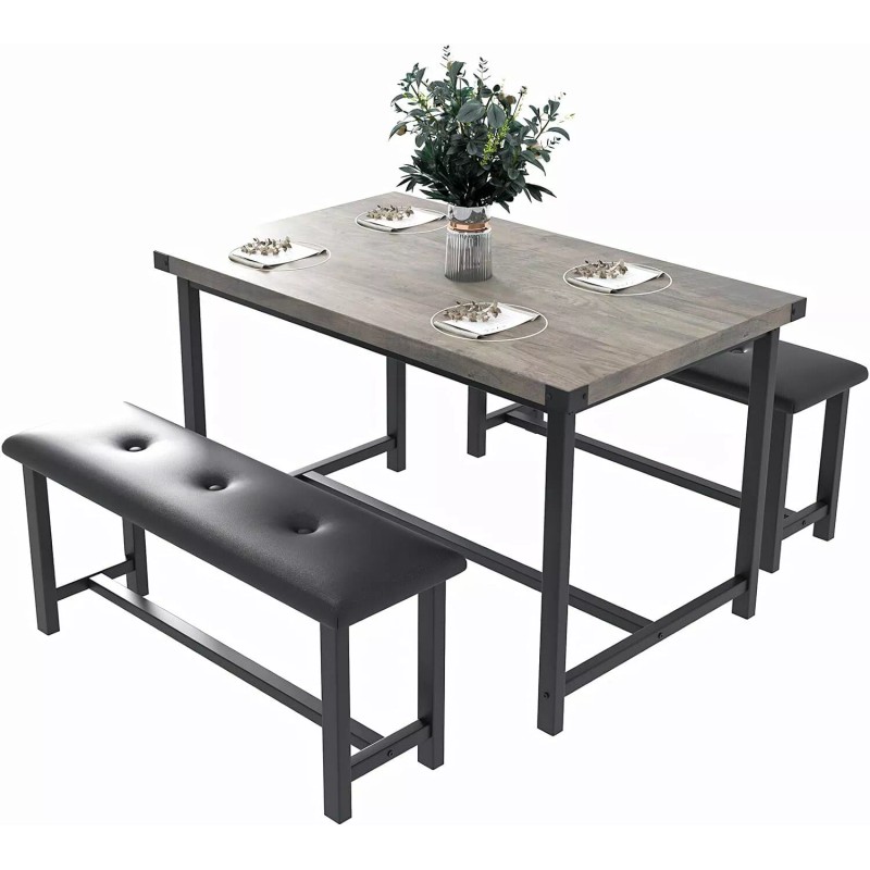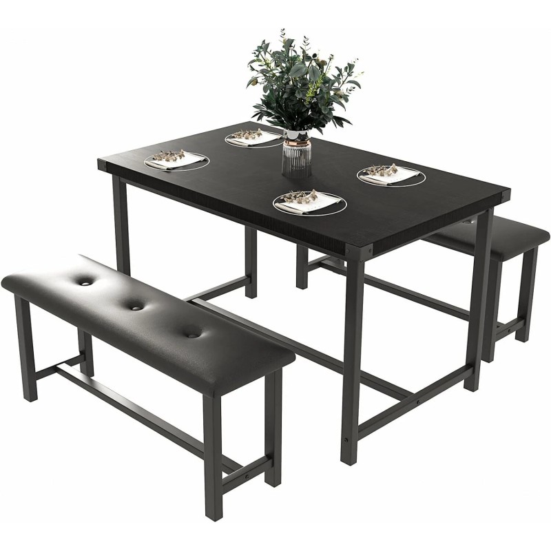 • 👍【DURABLE & STURDY FRAME】This dining table set with benches, offers a longer service life and more excellent stability. With the premium MDF Board top, the overall durability would be significantly increased. Protective iron plates have been added to the four corners of the desktop, making it more stable to use.