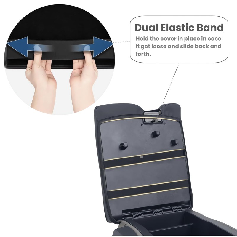 - Easy InstallationThe center console cover can be easily installed in seconds, with two elastic bands that hold it securely in place under the lid.