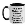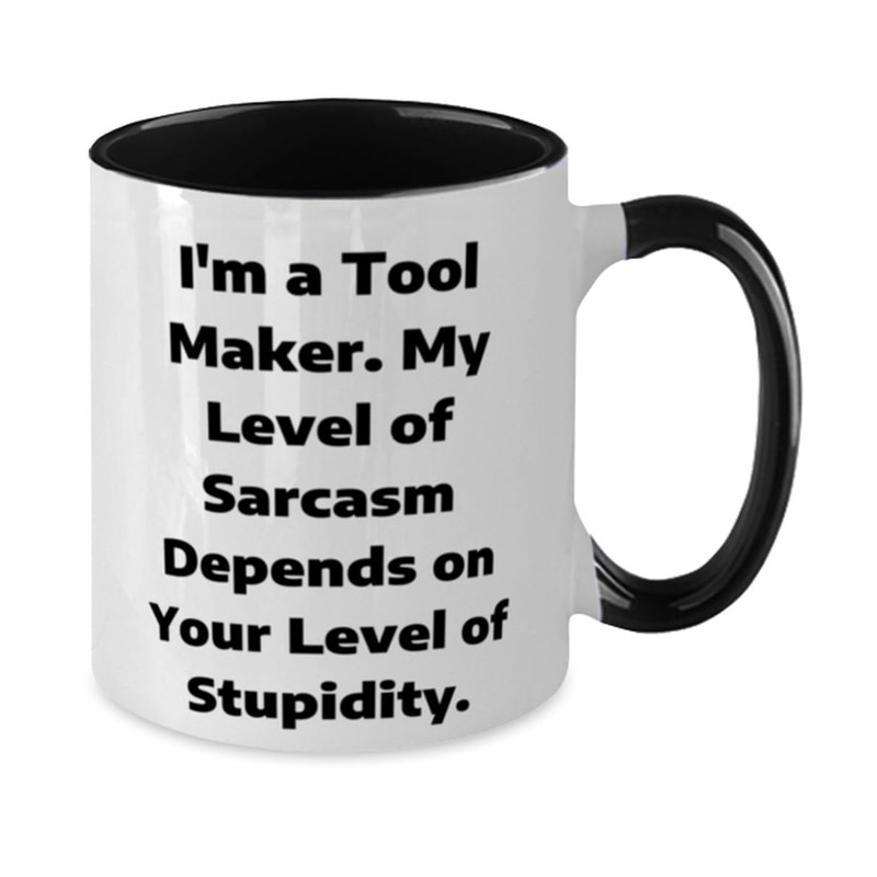 Joke Tool maker Gifts, I'm a Tool Maker. My Level of Sarcasm, Birthday Unique Gifts, Two Tone 11oz Mug For Tool maker from Boss