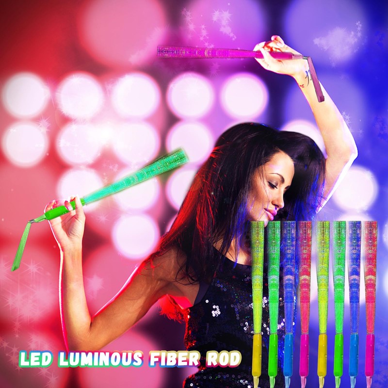 - Lightweight and portable: each light stick measures approx. 26 cm length, light in weight and in good shape, which is comfortable for you to hold, and will not add any burden for you, with rope, easy and comfortable to carry around with you. The fibre part is soft and easy to bend, and comfortable to wear when you are about to attend concerts or parties.