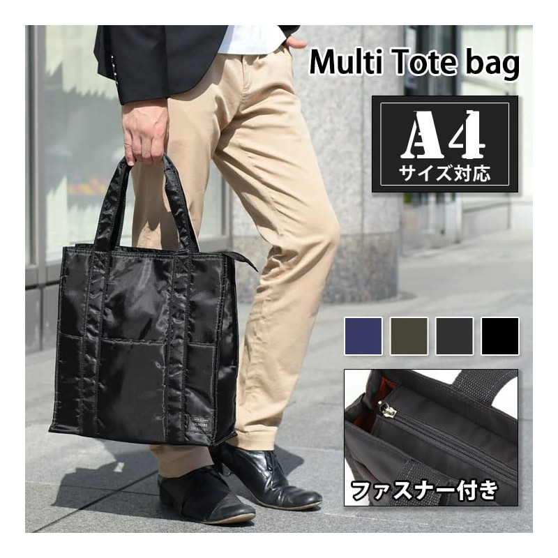 JOKnet Men's Mail-bin Tote Bag, A4, Vertical, Middle Size, Zipper, For Work or School Commutes, Business, For Men, Khaki