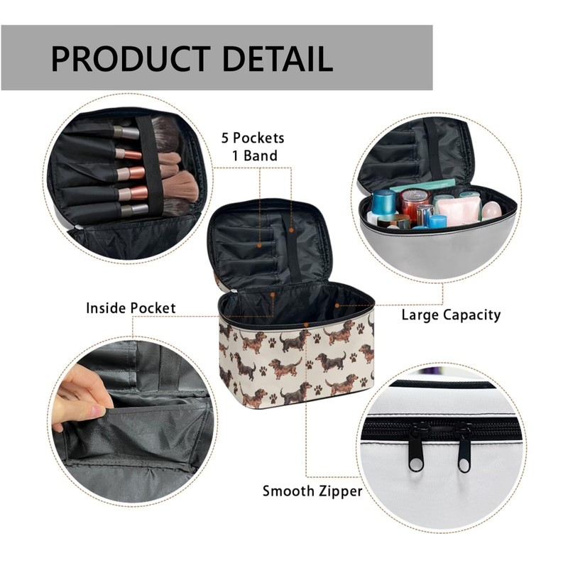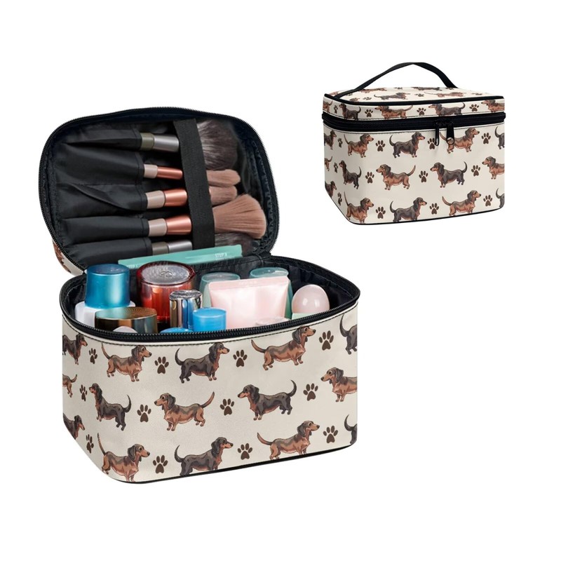 Jolamirel Travel Makeup Bag Essentials Bag for Women, Zebra Stripes Cosmetic Organizer Bag Floral Large Toiletries Accessory, Kawaii Puppy Dachshund, Casual