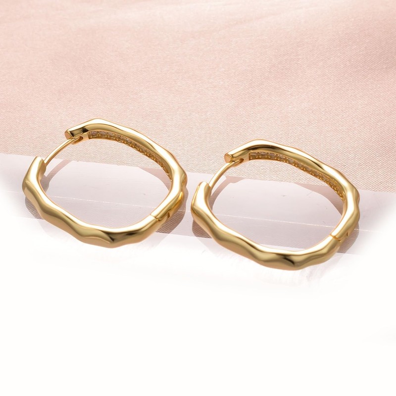 - ✦Geometrically CZ Hoop Earrings Material: High quality metal plating 14K yellow gold, hypolloallergenic, lead-free, nickel free, friendly to sensitive ears.