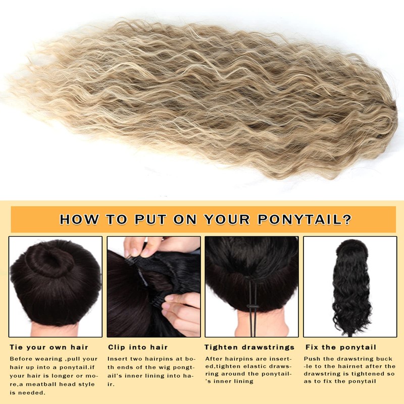 Jolelyne Curly Wave Blonde Drawstring Ponytail for Black Women Synthetic 28Inch Wavy Ponytail Clip in Hairpiece for Women . We Hope to Bring a Variety of Hairstyling to More Women Who Desire Beauty.