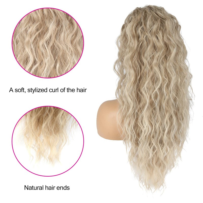 - 【Drawstring ponytail Premium Material】: This wavy pale ash blonde drawstring ponytail are made of light and soft heat-resistant material, making the long drawstring ponytail extension smooth and tangle-free, and it is soft and light to wear