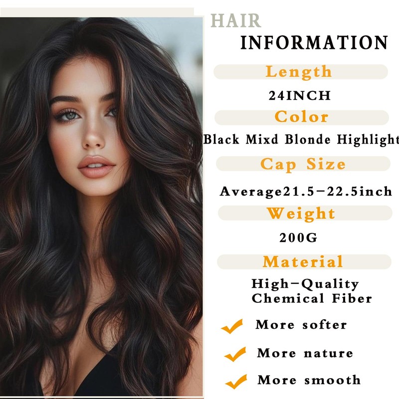 - Honey Brown Highlight Layered Wig Premium Material:Brown highlight Layered Cut Wigs Long Wavy Wig for Women,Made by high temperature resistant synthetic fibre,Soft,lightweight feel like your own hair Also easy to manage, not easy to tangle and hair loss,suitable for beginners