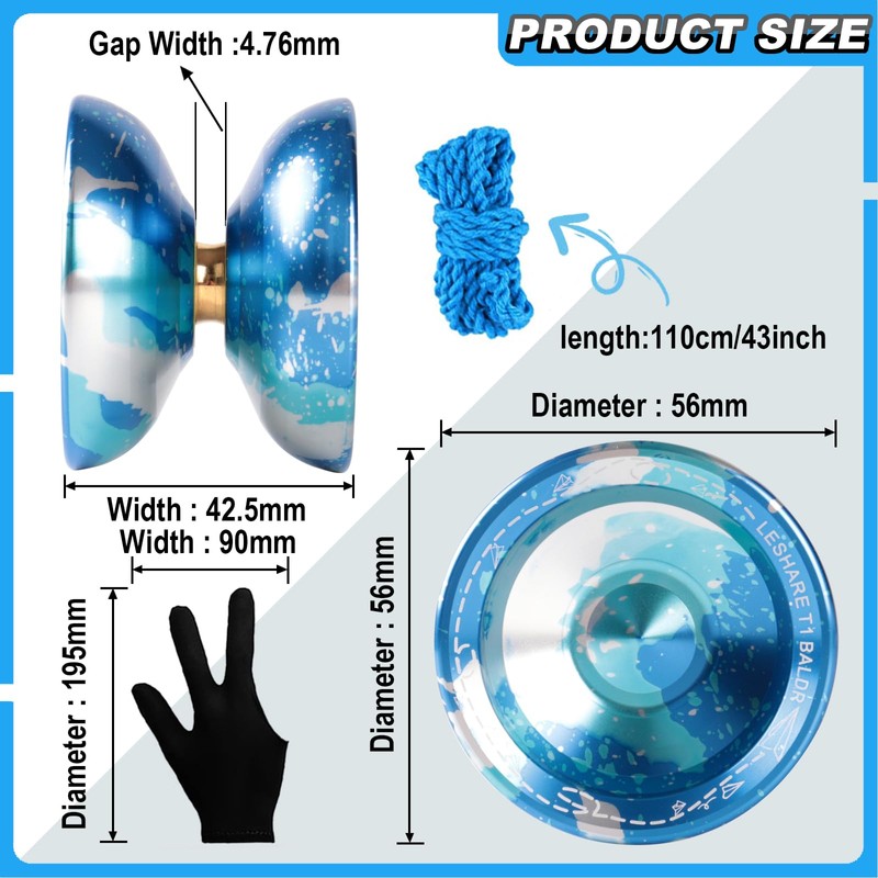 JOLESHARE Professional Unresponsive Yoyo for Pros and Responsive Yoyos for Kids Beginners, Package Includes Replaceable Responsive Bearings, yo-yo Gloves, and 5 yo-yo Cords(Blue Silver)
