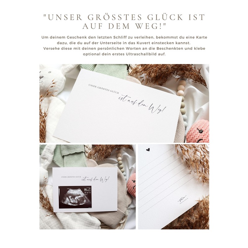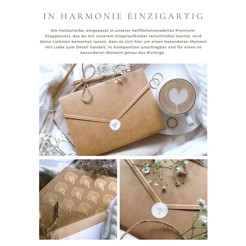 - With our wooden discs, enclosed in a special envelope for opening plus matching card, you have the perfect chance to share your anticipation, love and excitement with your loved ones.