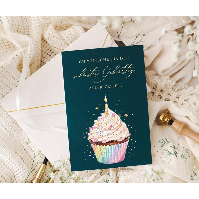 Joli Coon Birthday Card Stardust Cupcake - Premium Birthday Card with Envelope and Real Wax Seal