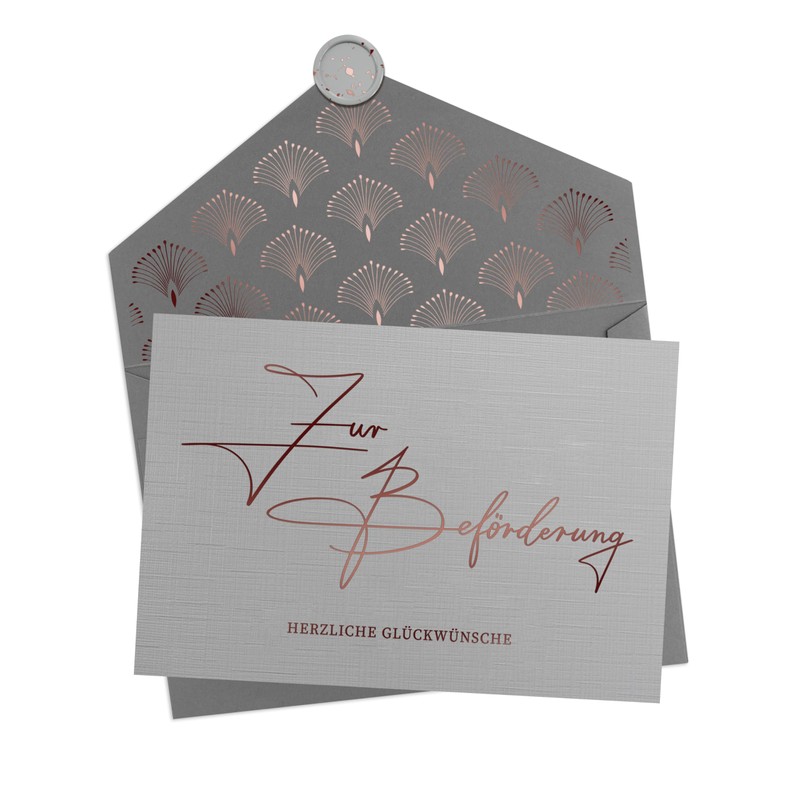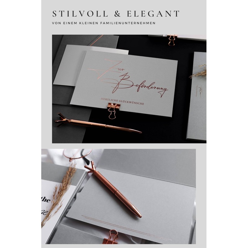 - For the love of uniqueness, our font is handwritten and rose gold hot foil embossed, printed on 350 g design paper and there is a premium envelope with real wax seal.