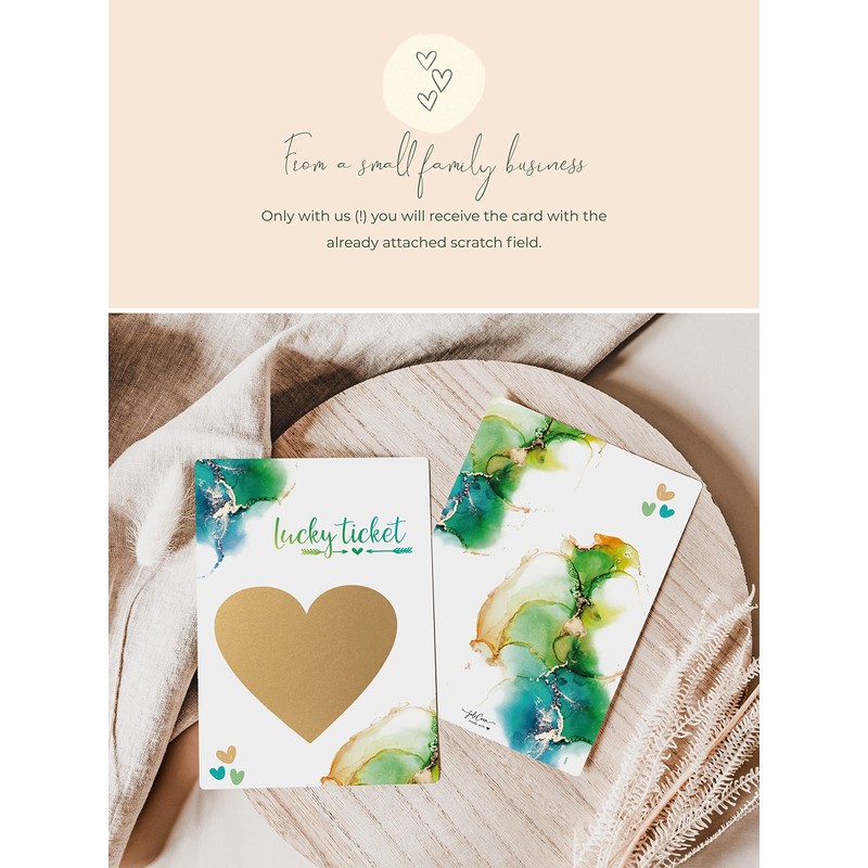 - Only with us will you receive the cards with the scratch field already attached, so you can look forward to the moment of delivery.