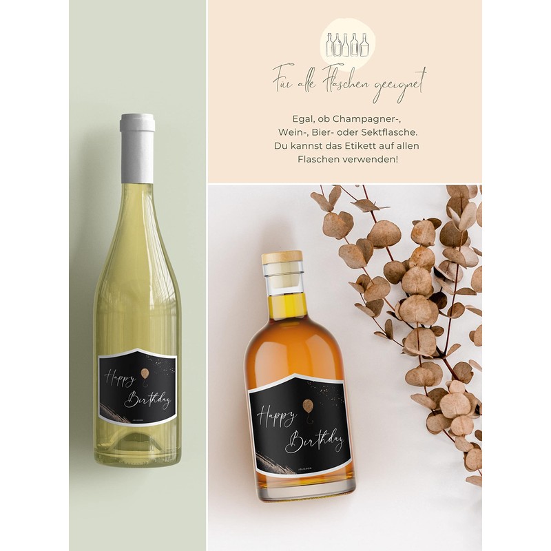 - Complete the Happy Birthday decoration with a bottle of wine, prosecco or beer with our bottle label and create a unique keepsake forever.