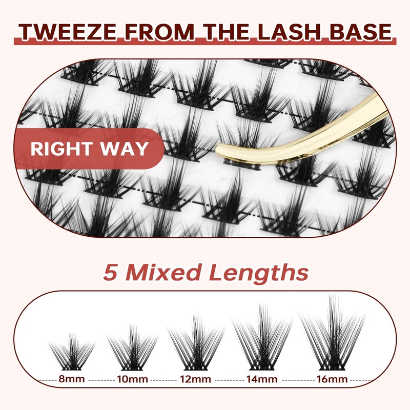- Customizable Lash Styles for Every Occasion: The 8-16mm cluster lashes allow you to customize your look by choosing different lengths and volumes. Whether you’re going for a soft & fluffy daytime style or a dramatic evening volume, this kit offers the flexibility to create various eyelash extensions styles. Achieve the perfect natural curl or a more thick, voluminous lash look based on your personal preferences.
