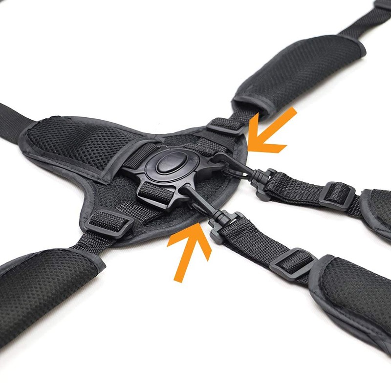 - ✅Baby Seat Belt 5-Point over the shoulders and hips, fastened to the buckle between the legs. Close to the pelvis, shoulders, and chest. In the event of an accident, as the child moves forward in the seat, Safety Harness Strap can "catch" them and immediately stop their displacement to keep kids safe.