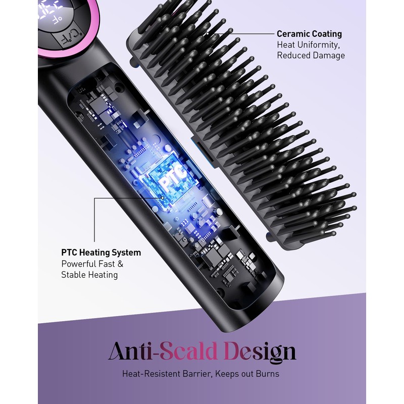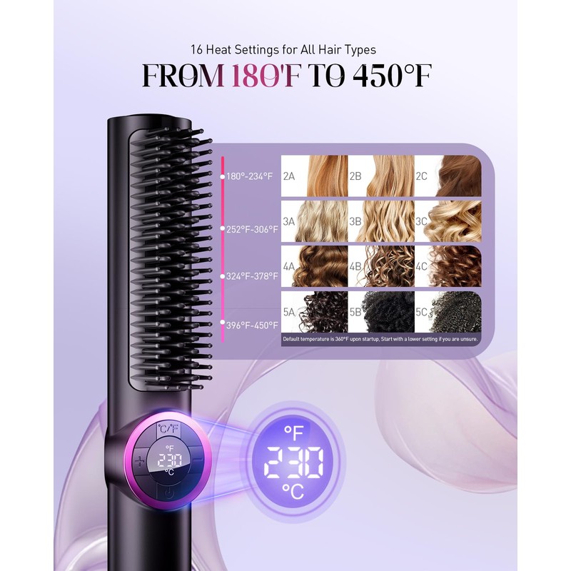 - Ajustes de calor ajustable: el peine alisador tiene 16 ajustes de temperatura y una pantalla digital LED para adaptarse a tu estilo adecuado de acuerdo con tu tipo de cabello, garantiza un alisado eficaz, se calienta en 20 segundos y se endereza rápidamente en 10 minutos. Además, con función de apagado automático de 60 minutos, garantiza un uso seguro.
