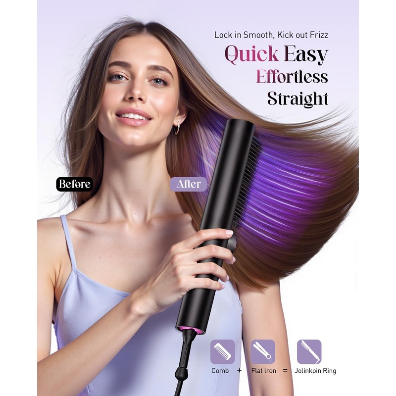 - Tranquilidad: el peine alisador JolinKoin está diseñado ergonómicamente para mayor seguridad y comodidad. Tiene las funciones de una plancha y rizador, con la comodidad de un peine, fácil de usar y llevar, y un cable giratorio de 360°, lo que te permite peinar en cualquier ángulo. Si tienes alguna pregunta o inquietud, ponte en contacto con nosotros para obtener apoyo.