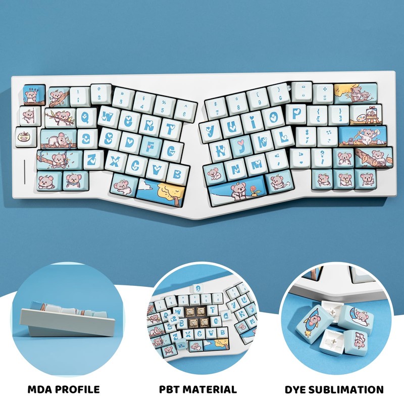 JOLINTAL 74 Keys PBT Keycaps Set Comet MDA Profile Dye Sublimation Gaming Keycaps Customized Keycap ANSI Layout Keycaps Compatible with Cherry MX Switches Mechanical Keyboards (Koala Keycaps)