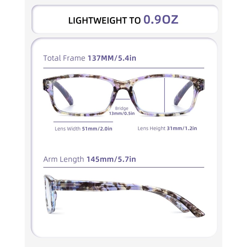 • ENHANCED CLARITY:Women's reading magnifiers feature precise magnification and scratch-resistant lenses that ensure 99% high clarity transmittance and true color restoration. The lenses have anti-fog and reflective coatings, as well as the ability to block harmful blue ray, comprehensively meeting all requirements