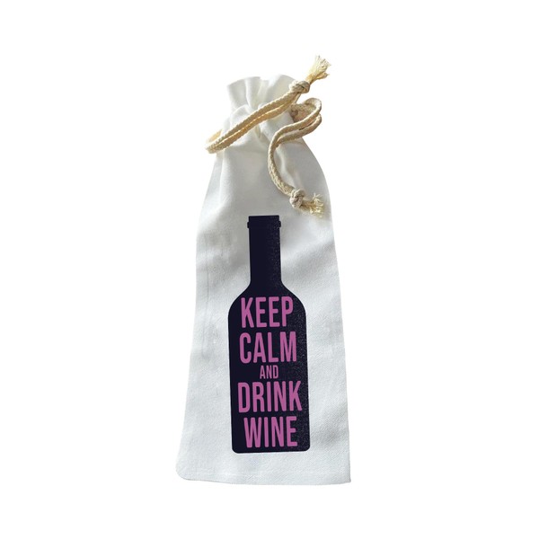 Jolitee “Keep Calm and Drink Wine” Bottle Gift Bag – Reusable Drawstring Canvas Bag with Classic Phrase Design – Funny Host Gift for Dinner Parties or Relaxation Time