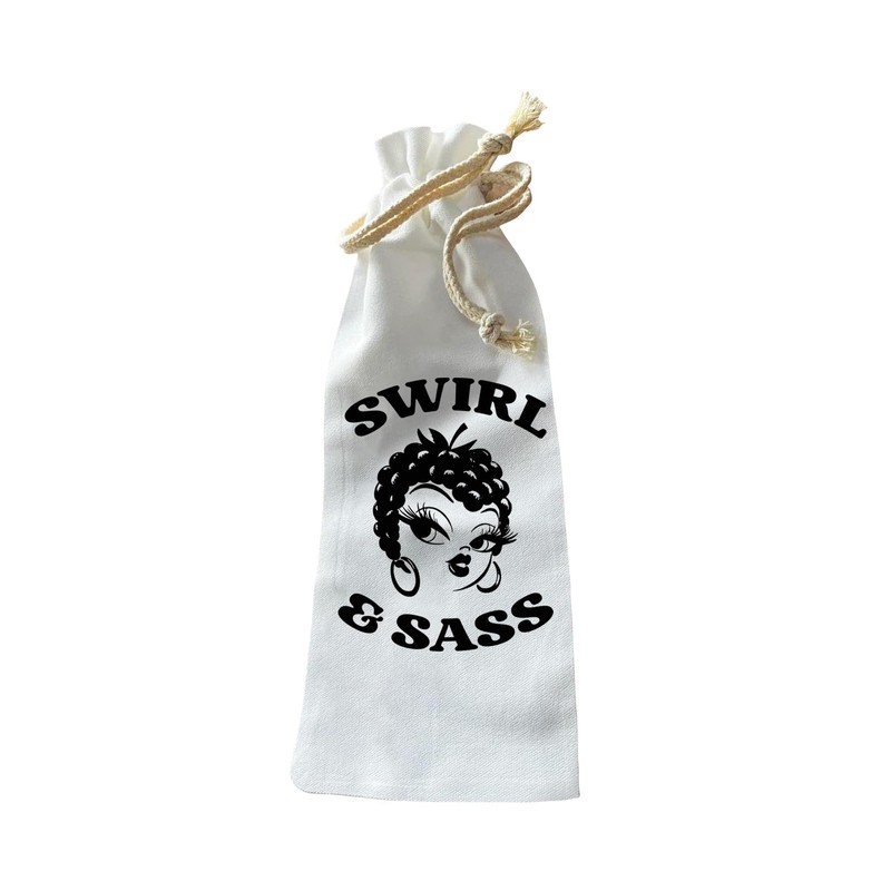 Jolitee “Swirl & Sass” Wine Bottle Gift Bag – Reusable Drawstring Canvas Bag with Diva-Inspired Character – Funny Gift for Wine Lovers or Dinner Hosts