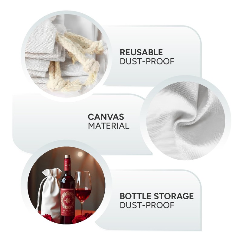 - Premium Canvas with Drawstring Closure; Durable fabric construction and secure drawstring keeps bottles snug; Ideal for standard wine, champagne, or liquor bottles