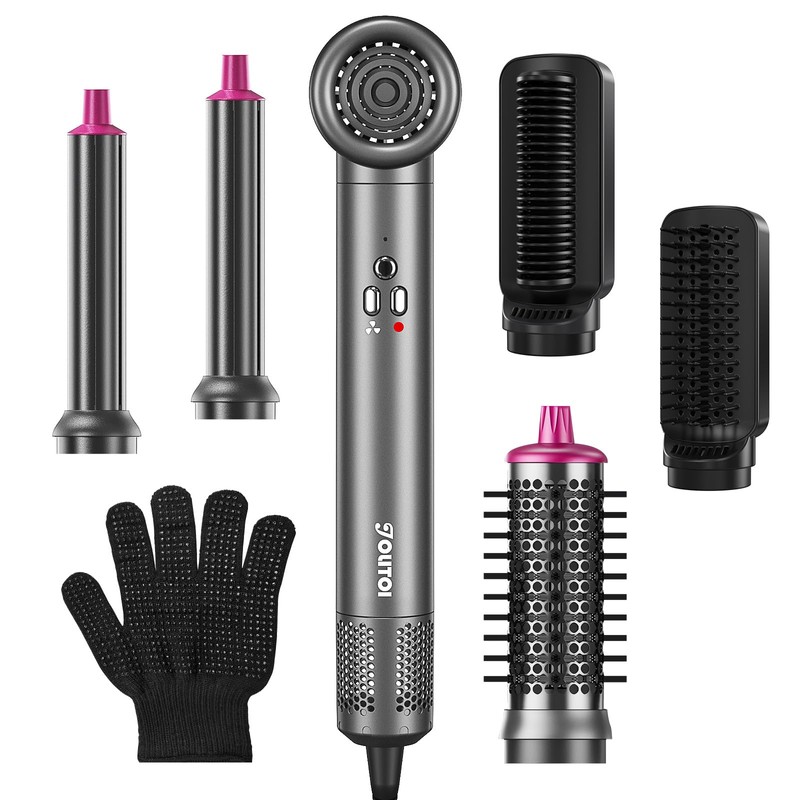 Jolitoi Hair Dryer Brush & 6 in 1 Hair Styler, Air Styler with 110,000 RPM High-Speed Negative Ionic Hair Dryer, Auto Wrap Curler, Blow Dryer Brush for Volumize, Straight, Wavy, Curly (Dark Grey)