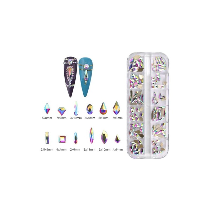 Jollin 120pcs Flatback Rhinestones Glass Charms Diamantes Gems Stones for Nail Art Box Multi Shapes Crystal AB