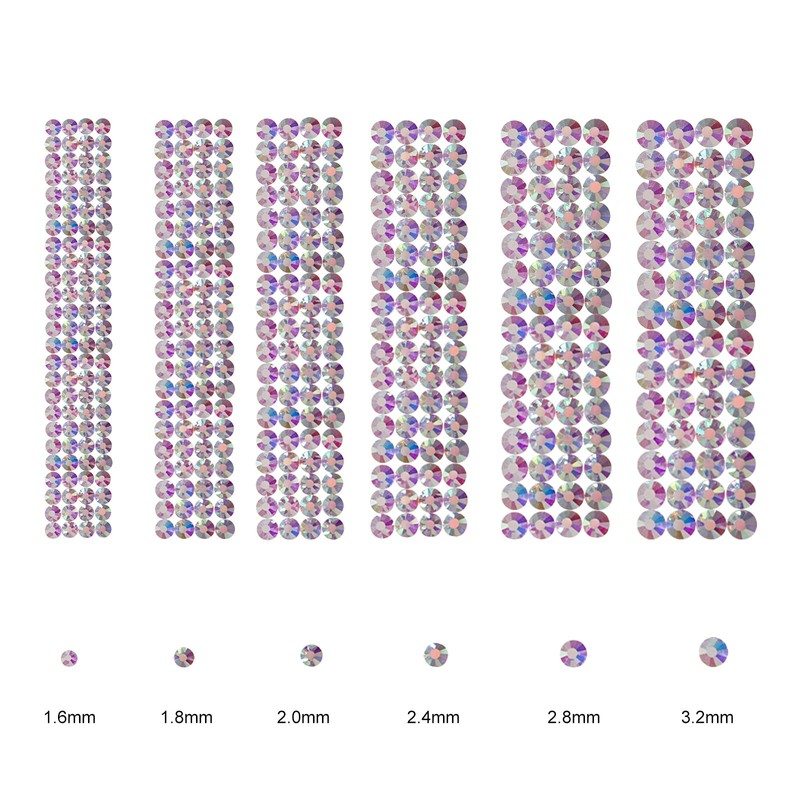Jollin 3456pcs Flatback Rhinestones Glass Charms Diamantes Gems Stones for Nail Art 6 Size ss4~ss12 Transparent AB