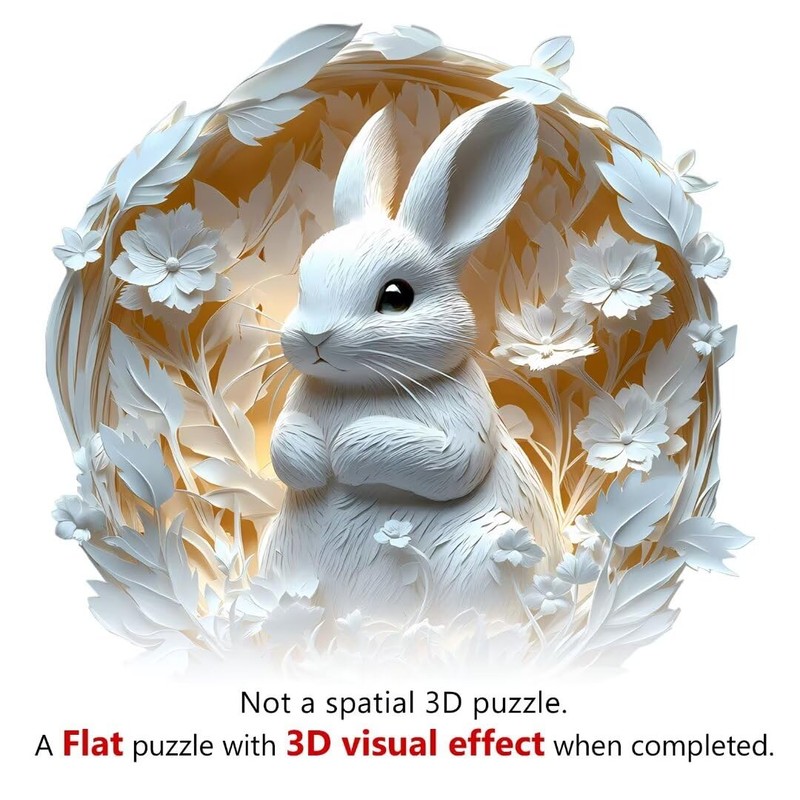 Jollitot Wooden Puzzles Adults, 3D Paper Rabbit Puzzles 290 Pieces, Unique Animal Shaped Wood Challenging Jigsaw Christmas Puzzles Gifts for Adults, 13.4x13.1in