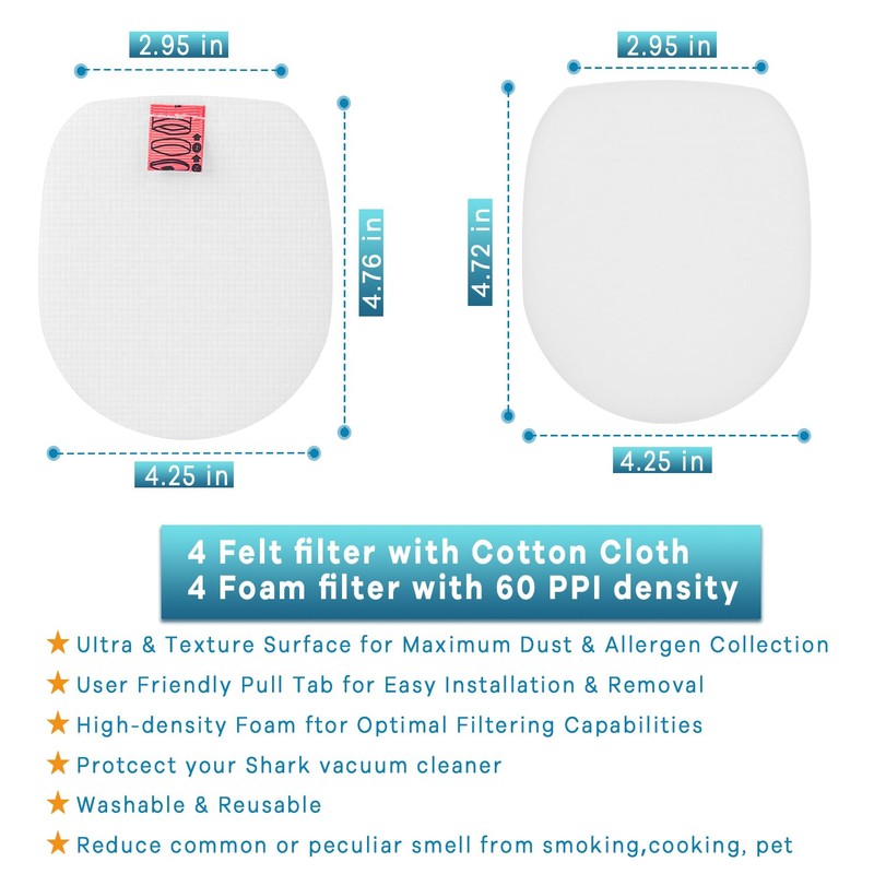 Jollsung 4 St1ck IZ201EU Foam & Felt Filters f1r Shark Anti Hair Wrap Akku-Staubsauger IZ201EU, IZ201EUT, IZ201EUTSB, IZ251EU, IZ251EUT, Ersatzfilterteile
