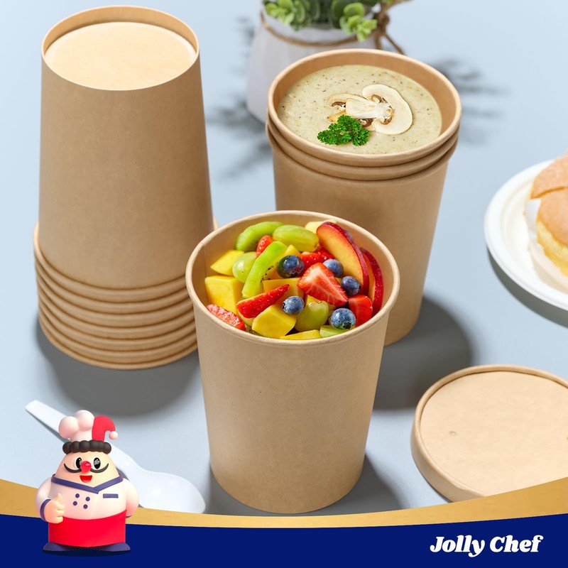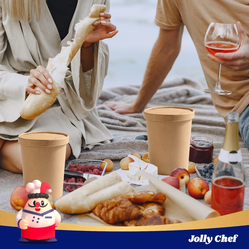 JOLLY CHEF 32oz Paper Soup Containers with Vented Lids, 25 Pack Disposable Food Containers, To Go Soup Cups with Lids
