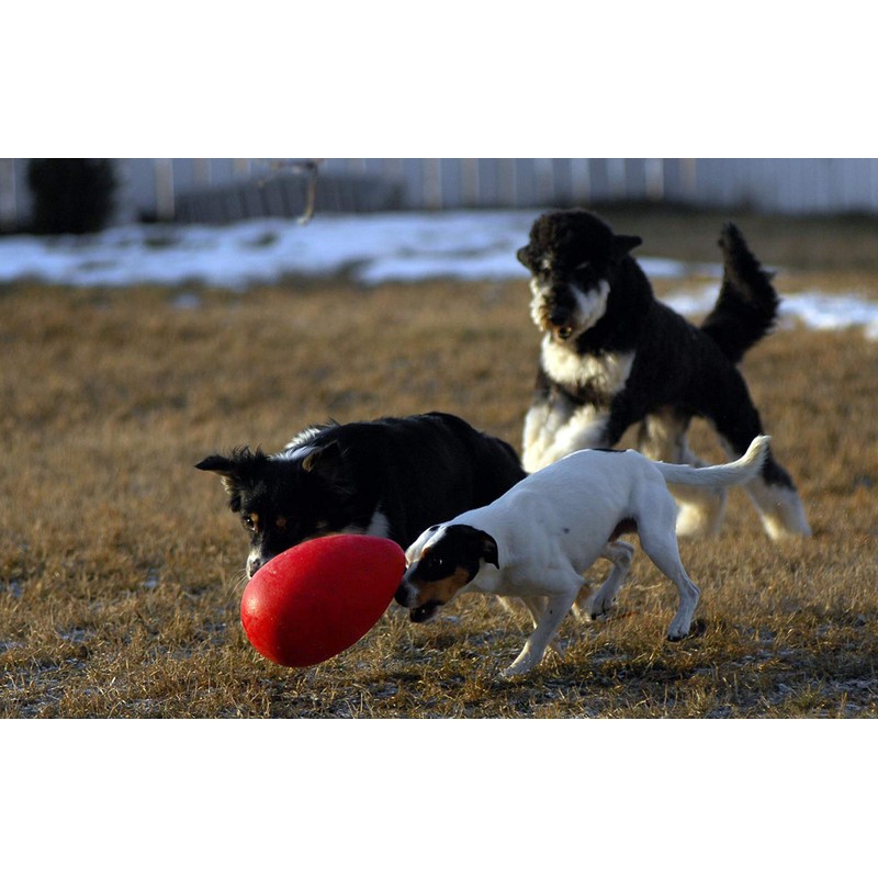 Question: Is there a dog toy that exists that is not only super-durable and strong, but also is actually fun to play with? Answer: Yes C The Jolly Egg by Jolly Pets!" Designed for constant, erratic motion, the Jolly Egg has a fun oval shape that dogs love to chase. They can never quite get a grip on the Egg, but they love to try! Since the toy constantly escapes your dog, it gives your dog a safe, fun outlet for their prey instinct. The Jolly Egg Dog Toy floats for water based fun. Jolly Pets is proud to manufacture the Jolly Egg in the USA, and to support organizations that provide dog toys to shelter dogs. Jolly Pets believes all dogs should be Jolly (even when waiting for their forever homes!) Note: We design our toys to be durable, but no dog toy is indestructible. For safety, you should always supervise while your dog plays with any toy. Remove all packaging and dispose or properly. Parts of this item can be a choking hazard to pets and children if removed from the toy. If any becomes loose, detached, or destroyed, remove the toy and discard immediately.