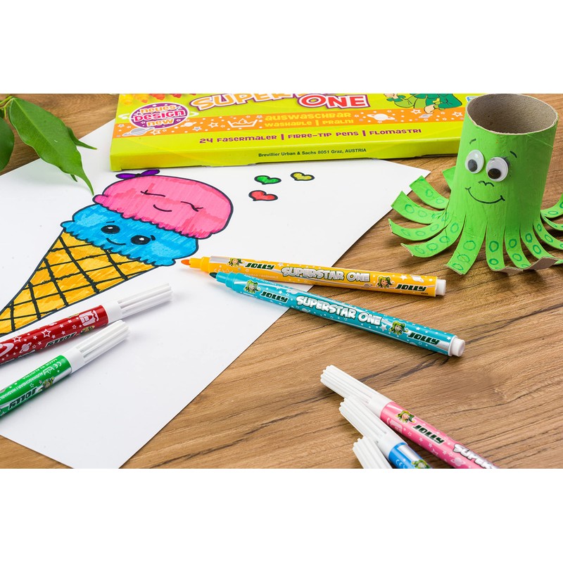 JOLLY Superstar ONE Fasermaler Hochwertiger Filzstift Auswaschbar 24 Stück im Kartonetui 4445-0030 24 Fasermaler