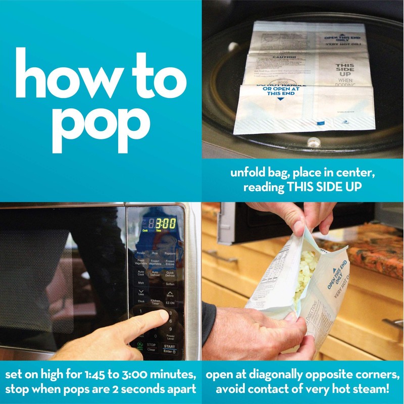 - PACK OF 4 BOXES: Each box contains three regular-sized (3 ounce) individual bags, for a total of 12 microwave bags. Each bag contains 2.5 servings that yield 10 cups of popped popcorn, making it the perfect healthy snack.