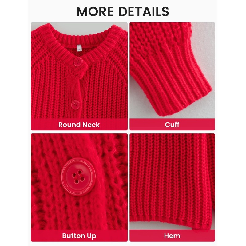JOLLYBUYER Women's Knitted Crop Cardigan Sweaters Button Down Fall Open Front Chunky Loose Casual Cardigan Red