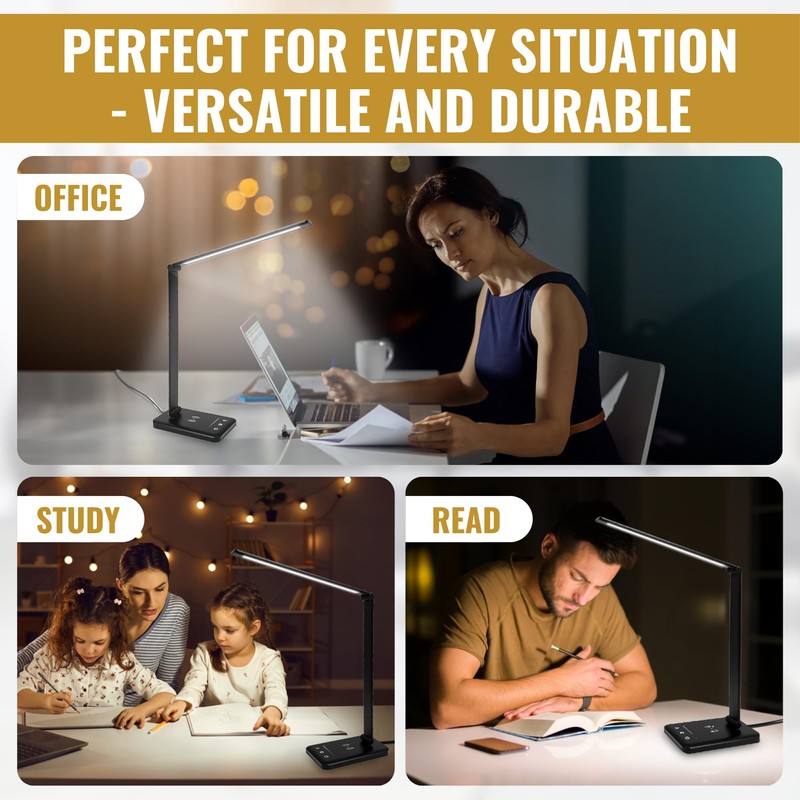 - Eye-Friendly Touch Lamp for Nightstand: This reading lamp offers up to 800 lumens of bright, flicker-free light with a maximum 8W output, perfect for a home office or bedside. Designed with a gentle acrylic panel, it provides soft illumination that reduces eye strain, even during long hours of reading or computer work. With a lifespan of 50,000 hours and a high CRI of 85+, this office lamp ensures clarity and comfort, making it an ideal choice for any workspace or study area.