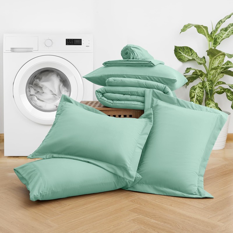 JOLLYVOGUE 11 Pieces Queen Comforter Set, Reversible Bed in a Bag Queen Size, All Season Bedding Set with Soft Ripple Green Comforter, Flat Sheets, Fitted Sheets, Pillowcases & Shams