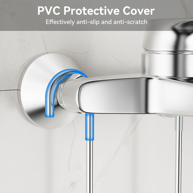 • SCRATCH RESISTANT & NON-SLIP - Both shower shelf hooks come with PVC protective covers and suction cups to avoid scratches and improve stability.