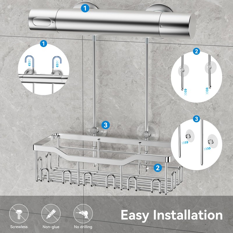• EASY INSTALLATION - Our shower caddy requires no drilling or gluing, but only easy assembly and provide stable and reliable storage in your shower room.