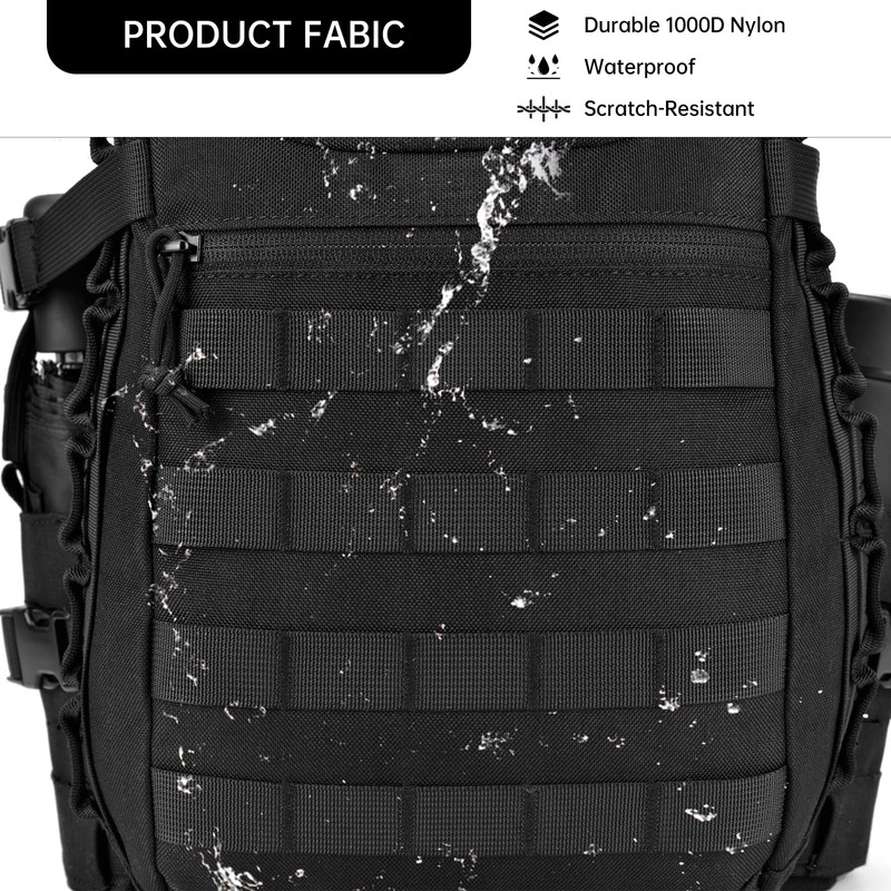 - 【DURABLE & WATER-RESISTANT】: Made from tough, abrasion-resistant, and water-repellent fabric, this military backpack is built to handle rough conditions. Reinforced seams, high-strength zippers, and heavy-duty buckles ensure long-term durability. Reliable for construction work, range days, or outdoor survival tasks in challenging environments.