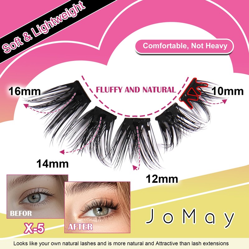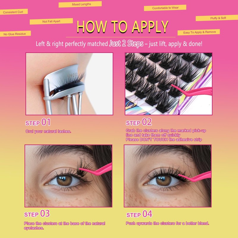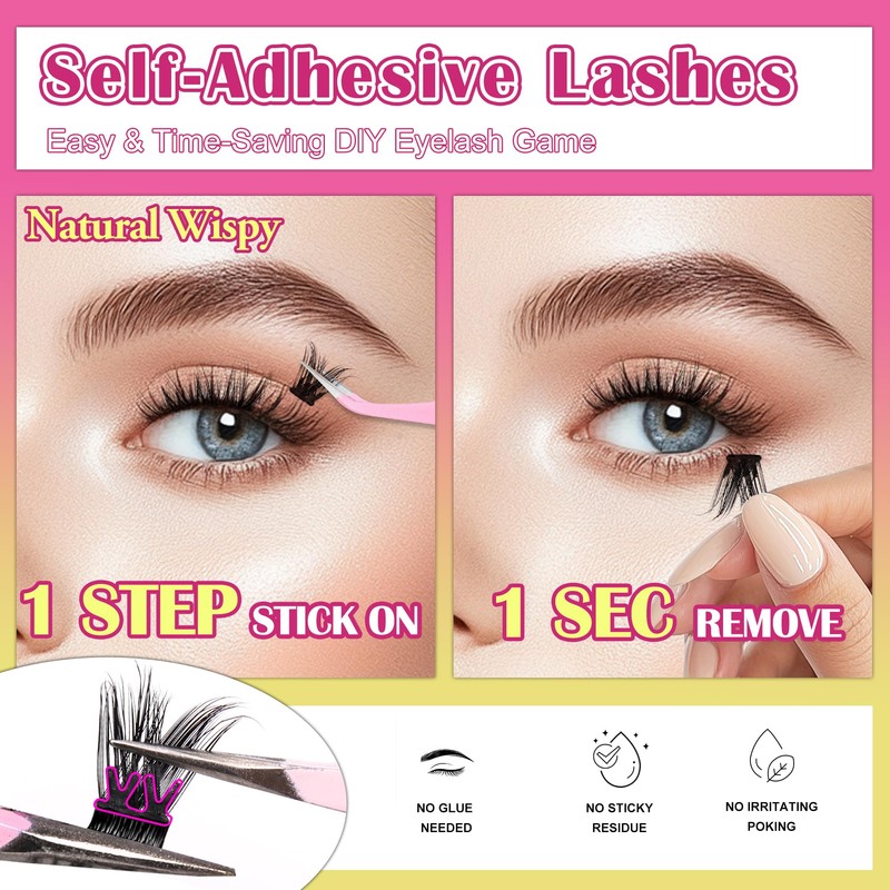 - Beginner-Friendly: Pre glued eyelashes clusters perfect for quick makeup needs like travel, work, or dates. Press on lashes easy to apply in under a minute, glueless lashes making it ideal for beginners and busy lifestyles